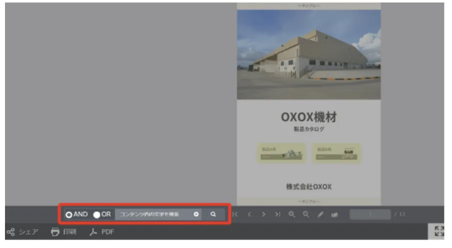 資料の場合、たくさんの商品の中から見たいカテゴリの商品を見てもらう必要があります。そのためには、商品を文字検索してもらうことも重要です。文字検索はPDFをアップロードする時点で文字認識(OCR)している必要があります。