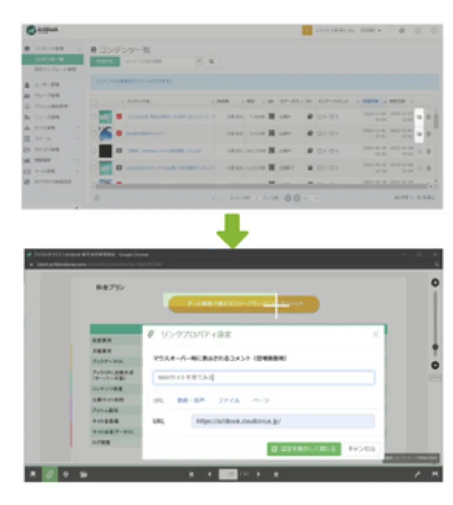 ブックのページごとに、Webサイト(ECサイトなど)やブックの指定のページに遷移できるリンクを付与できます。
